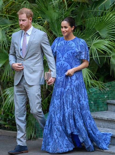 Carolina Herrera, Carolina Herrera’nın kendisi tarafından kurulmuş, kraliyet ailesinin ve diğer ünlü isimlerin başvurduğu bir tasarımcı markasıdır. Meghan 2019’da Fas’a yaptığı bir ziyaret sırasında gök mavisi desenli bir elbiseyi tercih ederken, geçen yıl sanal bir nişan için kırmızı çiçek baskılı Carolina Herrera elbisesini giydi.